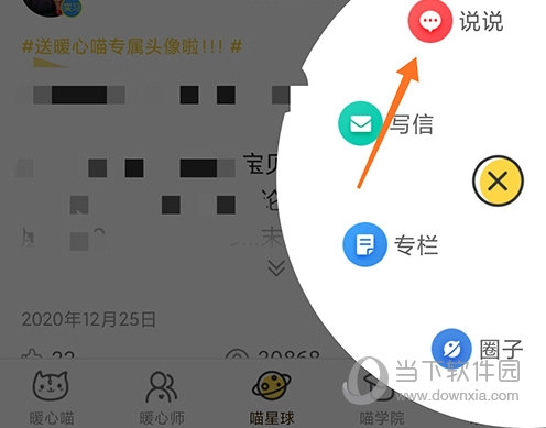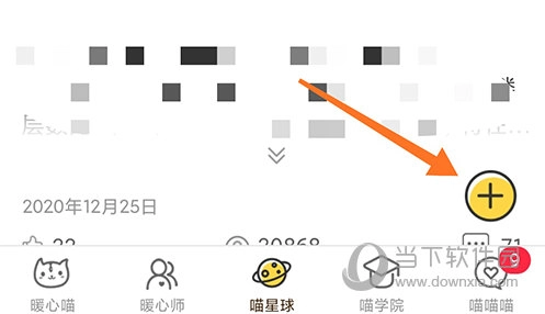1、第一步先打开解忧暖心喵应用,进入软件界面后,借助底部的菜单栏进入喵星球页面,接着点击页面右下角的+号图标。