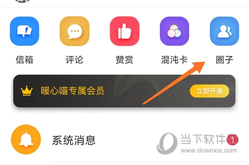 1、通过解忧暖心喵底部菜单栏的“喵喵喵”选项进入个人中心页面,随后点击圈子选项;