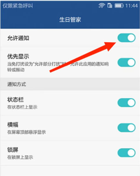 2、开启【允许通知】,这样在生日管家运行时您就能收到生日提醒了。为了确保您能够更加及时地获得提醒,建议您开启所有通知权限哦!