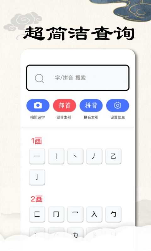 1、超简洁查询,最全解释,笔顺示例,AI智能识字,精准文字显示;