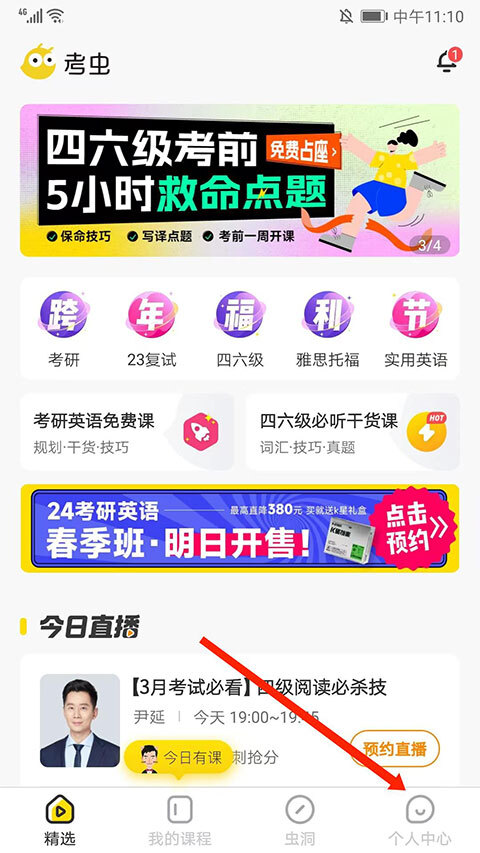 【考研直播课程】与考虫的老师进行实时互动学习,享受沉浸式的学习体验。提供专业课程的一对一辅导服务,并为每位学生量身定制复习计划。直播结束后,您可以无限次回看学习内容。APP内配备原生大屏幕,让您拥有更宽广的视野和更加畅快的复习体验。