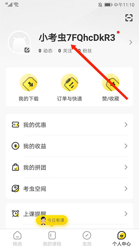 1、打开考虫app,选择右下角“个人中心”选项,