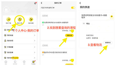 一、考虫如何查询课程资料的快递信息
