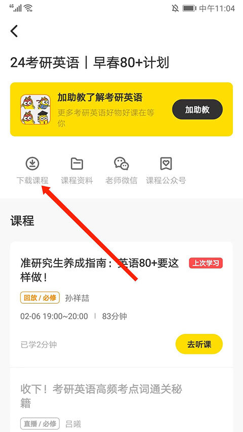 3、进入课程详情界面,选择“下载课程”选项,