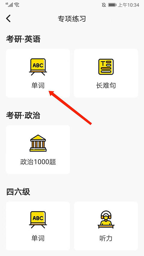 3、进入单词专项练习界面,选择“单词”选项,