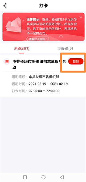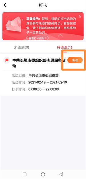 4、活动结束时,再次点击【打卡】;