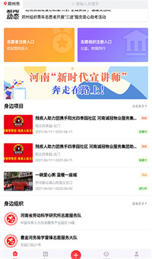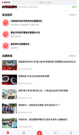 3、在首页上,您可以浏览许多志愿活动,了解详细的活动信息,并参与到感兴趣的活动中。只需输入关键词,就能找到您想了解的新闻资讯。