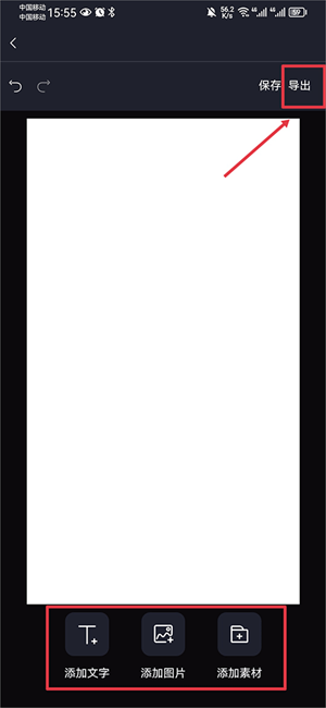 5、空白模板新建完成后,同样使用添加文字、添加图片、添加素材这三个工具设计出自己喜欢的图片并导出即可