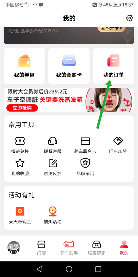 1、进入天猫养车app【我的】页面后点击【我的订单】