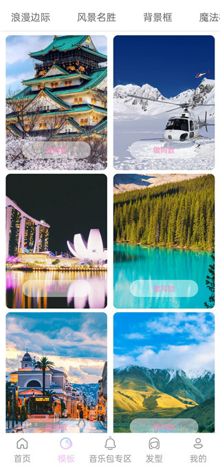 繁华都市、浪漫街头、异域海滩、使用画框模版,丰富照片背景,单调的自拍也能极具个性。