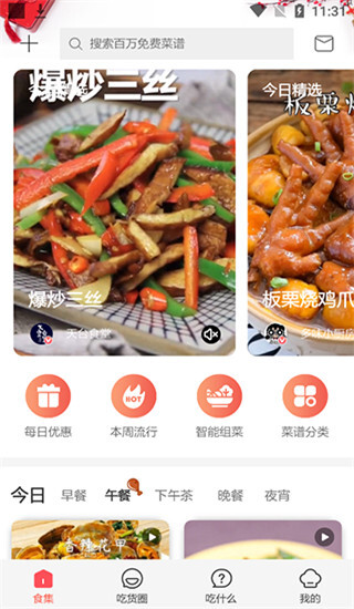 美食杰网独特的三餐菜谱推荐,每天推荐15道精品菜谱,覆盖三餐及下午茶、夜宵。