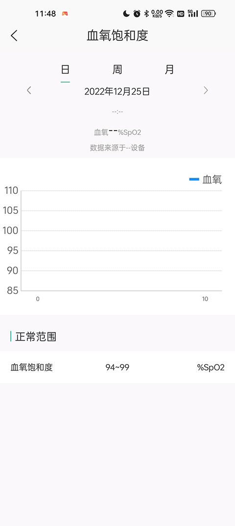 将最近的血氧饱和度都记录在表格之上,将用蓝色的图标颜色将其重点标注出来。