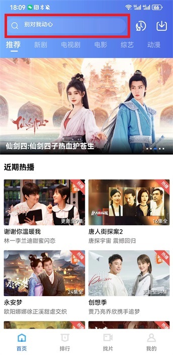 1. 开启软件,于软件界面点击上方的【搜索框】,搜索想看的电视剧。