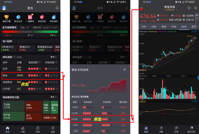 从趋势指数,强度指数,多空力量对比,持仓流向,资金流向功能中点击某具体合约或品种来打开