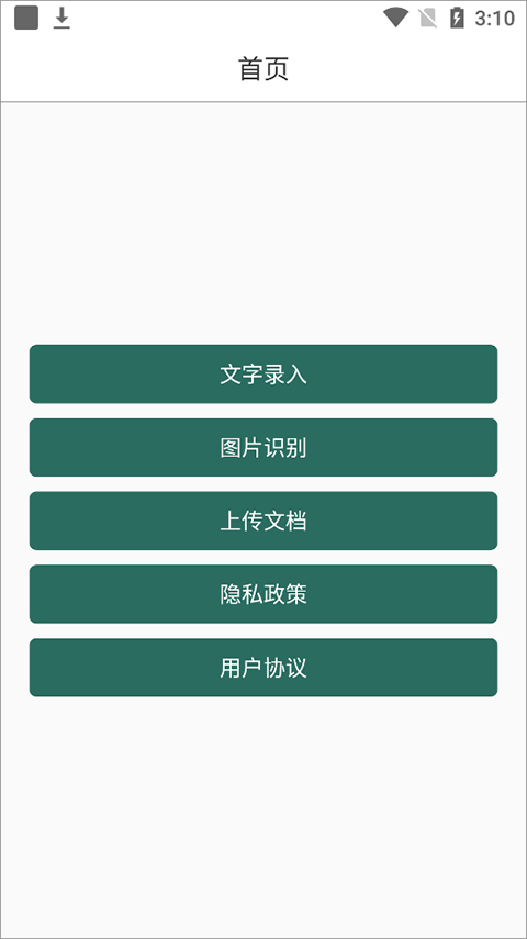 1用户启动应用后会直接进入首页,然后首先需要点击上传文档。