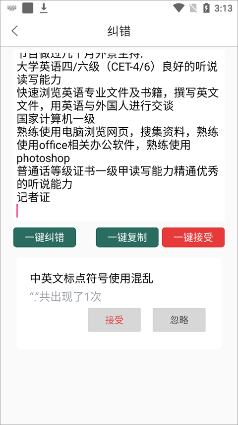 4、接着就会给出经纠错提示,用户可以点击【一键纠错】就可在线纠错了