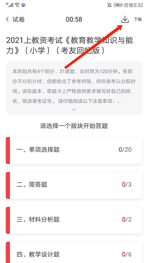 4、进入试卷界面,选择右上角“下载”即可下载试卷。