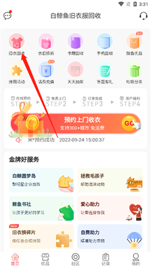1、打开软件后,直接选择旧衣回收服务