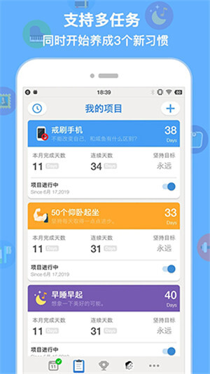 iBetter app可支持多任务,同时开始养成3个习惯。