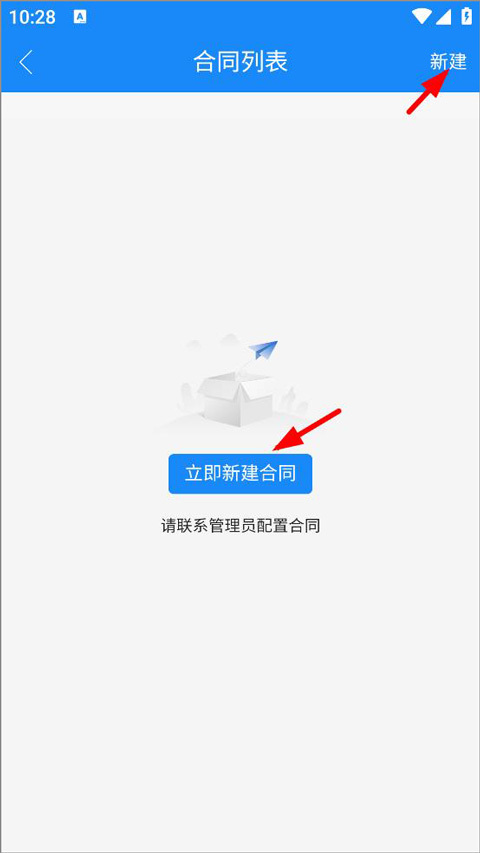 3、进入合同列表页面,点击立即新建合同或右上角点击新建添加也可;