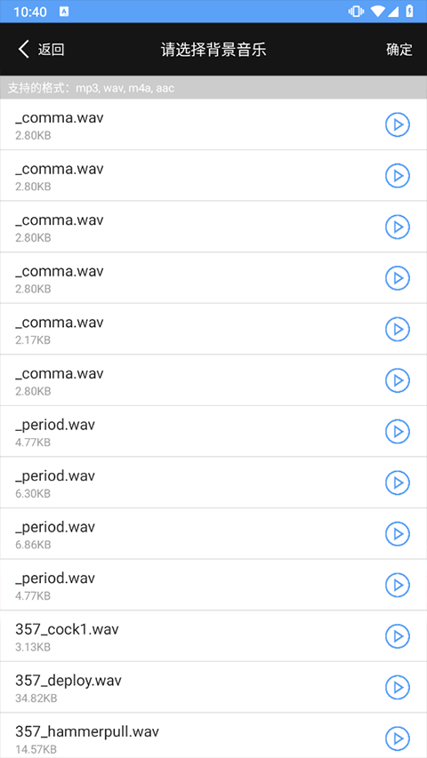 3、挑选你想要添加的背景音乐(支持的音乐格式为:mp3、wav、m4a、aac ,其他格式或许会添加失败)