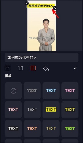 6、打开文字版块,用户可修改模板文案,选择文字模板、颜色,调整文字大小位置。