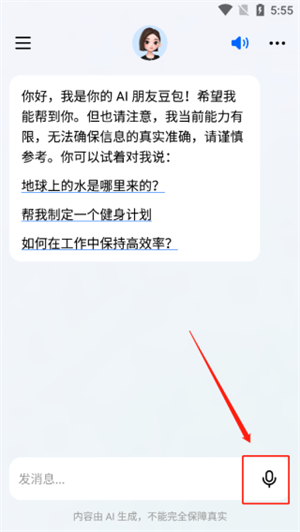 3、即可成功登陆,可直接在下方语音输入与豆包聊天