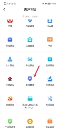 1. 打开穗好办app,在办事功能底部找到“更多专题”并点击进入。