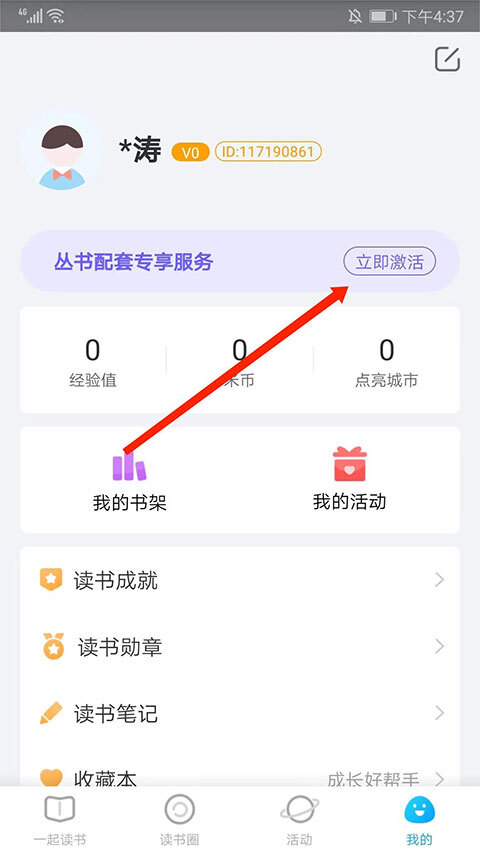 2、进入个人中心界面,选择丛书配套专享服务栏目中的“立即激活”选项,