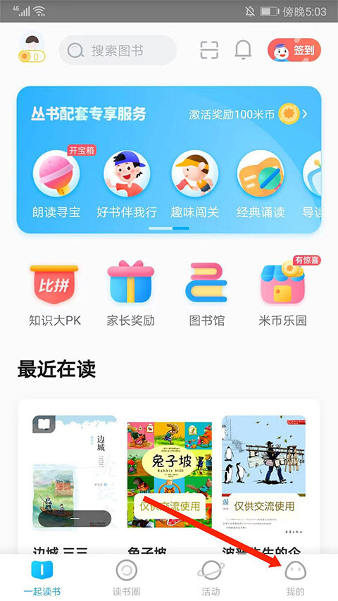 收到丛书后,会附带一张彩色纸质地图,读书卡印在地图的左上角。在【一米阅读APP】的【一起读书(首页)】板块中,找到【丛书配套专享服务】,然后按照相关提示进行操作即可。