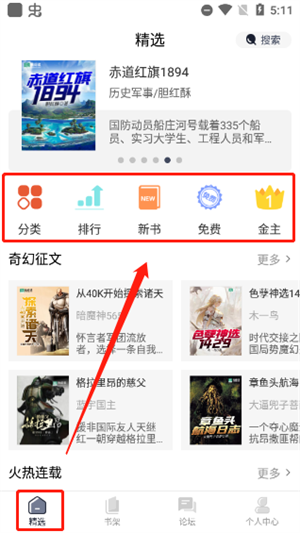 进入app点击“精选”我们可在此快捷的寻找官方所推荐的优质图书