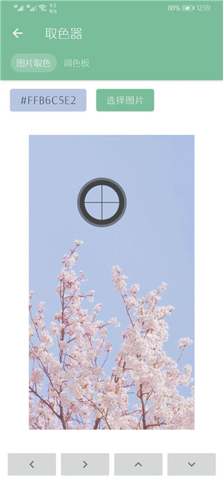 4、点击取色器,上传图片后任意点击一点,可以查看这一个色号。
