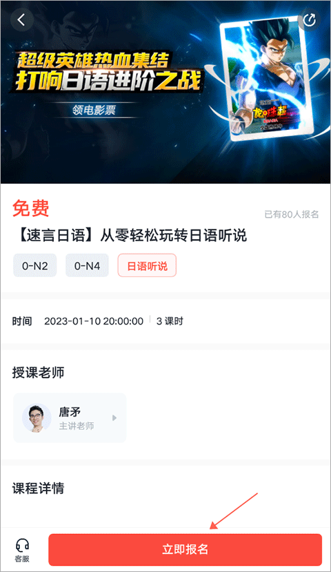 2、进到课程页面后,点击下方的“立即报名”