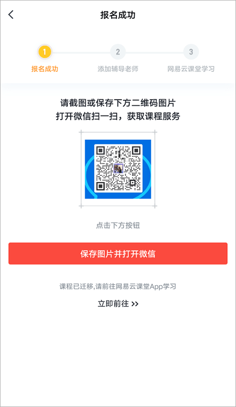 3、最后保存图片并打开微信添加辅导老师,现课程已迁移,麻烦小伙伴们前往网易云课程app学习。