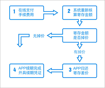 2、押呗系统会通过智能计算,判断是否需要归还续期差价。押呗系统接入了二手数码行情大数据库,能够智能推算未来的跌价走向。要是在用户续期的时间段里,寄存产品出现跌价情况,就需要提前归还寄存本金,在APP内简称为“续期差价” 。