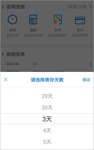 没问题,APP具备在线赎回(续期)功能。在APP上,你能够在线选择续期的天数,系统会自动计算出续期费用。另外,关于是否需要提前归还部分寄存费用(在APP中简称为续期差价)也能在操作过程中知晓。