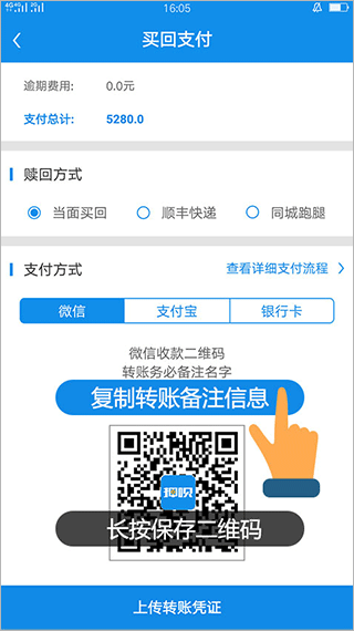 2、依照买回页面所展示的转账方式,完成相应金额的转账操作。转账过程中,务必填写备注信息,备注信息应涵盖:用户姓名、用户电话以及订单号。