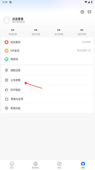 2、右滑换向 轻点收藏乘车模式预知还有多远