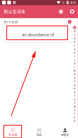 4、接着进入“生词本”,便能对收藏的单词进行学习背诵。