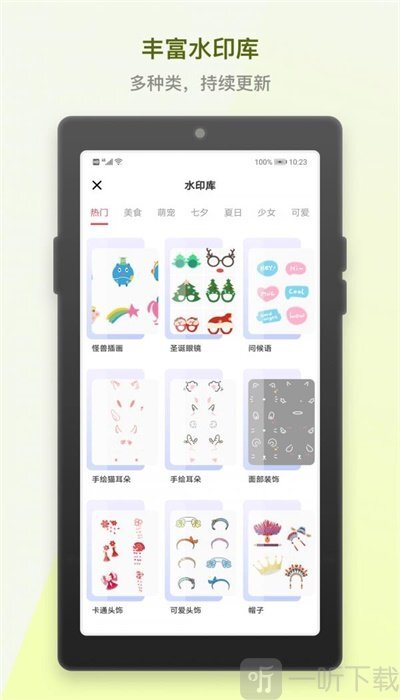 》软件亮点:1. 该软件的水印功能极为完备,时间、地点、位置、美食以及文字等,皆可作为水印内容。