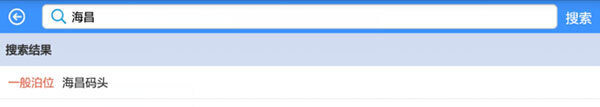 1、若要进行搜索,只需点击右上角的放大镜按钮,进入搜索栏。在此处,无论是输入目的地的中文关键字、拼音,还是目标船舶的MMSI码、船名中文、拼音,均可实现搜索功能。点击搜索即可。举个例子,若要查找江都港海昌码头,仅需输入“海昌”这两个关键字,再点击搜索就能找到。