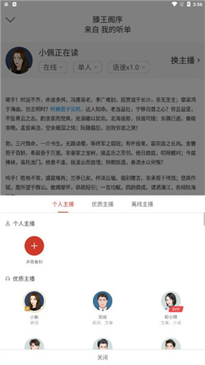 ·【丰富音色任你选】众多高音质且朗读流畅的主播阵容等您来挑选,无论是富有磁性的男声、婉转柔美的女声,还是独具特色的方言普通话,亦或是中英双语混读以及标准美式英语,全都一应俱全,为您带来真切美好的听书感受。