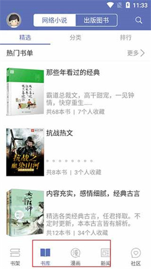 1、软件包含小说、漫画、新闻和社区四个部分,前三者是阅读,后者为讨论;