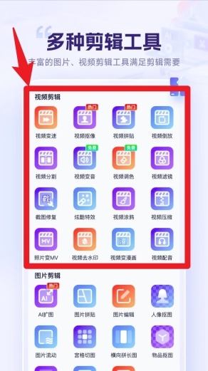 3. 进入「剪辑工具」页面,从视频变速、抠像、拼贴、配音等功能中,依据自身需求开展多项剪辑操作。