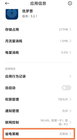 2. 向下滑动页面,找到省电策略,然后点击该省电策略。