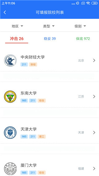 3、系统会根据你填的分数筛选出可以填报的院校列表;