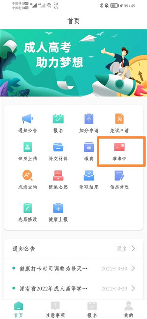 2、其次打开潇湘成招APP进行测试网络连接是否异常。