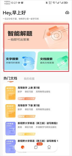 1、首先下载学小易app,软件中为用户提供了拍照搜题,文字搜题,文档搜题三种搜题方式
