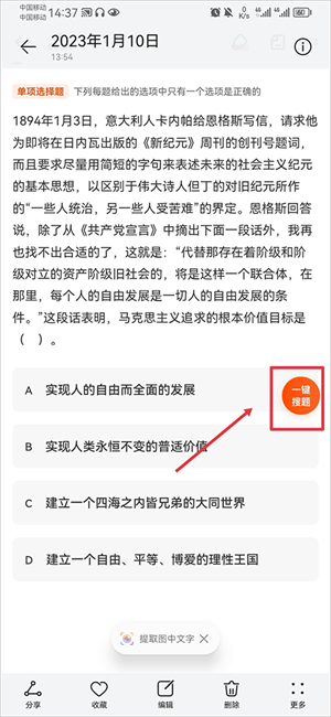 7、粘贴内容进行文字搜题:选择题目并点击复制后,并点击一键搜题