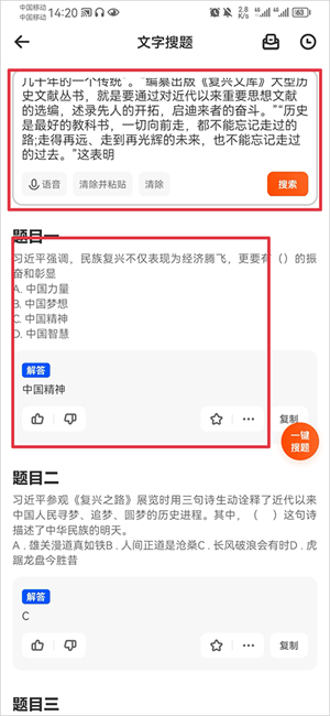 3、文字搜题:在搜索框中输入关键词或将题目粘贴进去,即可为你搜索出该题的正确答案